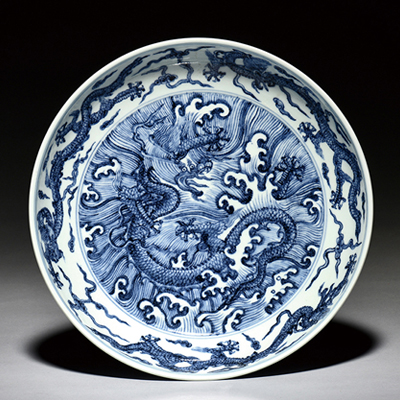 明永乐 青花云海龙纹盘