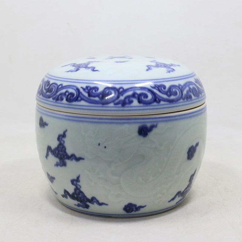 明宣德 青花剔刻龙凤纹盖罐