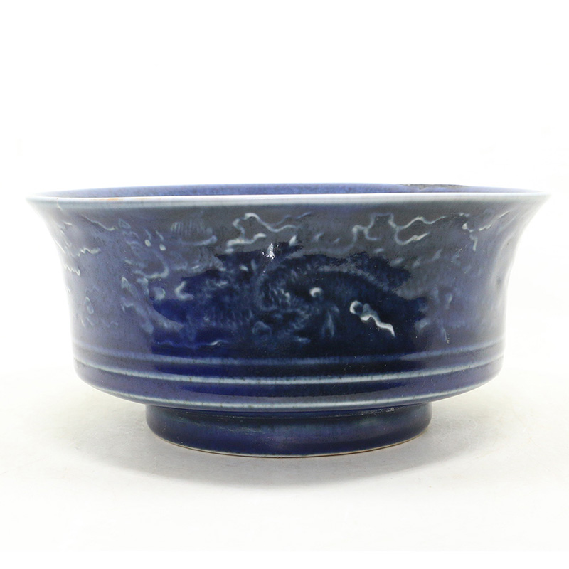 明宣德 洒蓝釉云龙纹钵