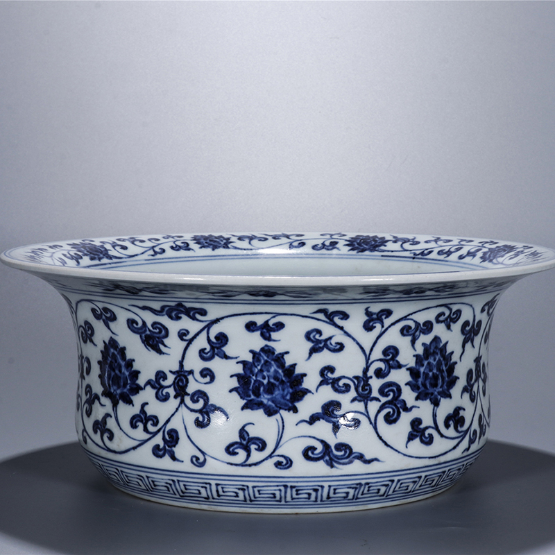 明永乐 青花缠枝花卉莲纹折沿盆