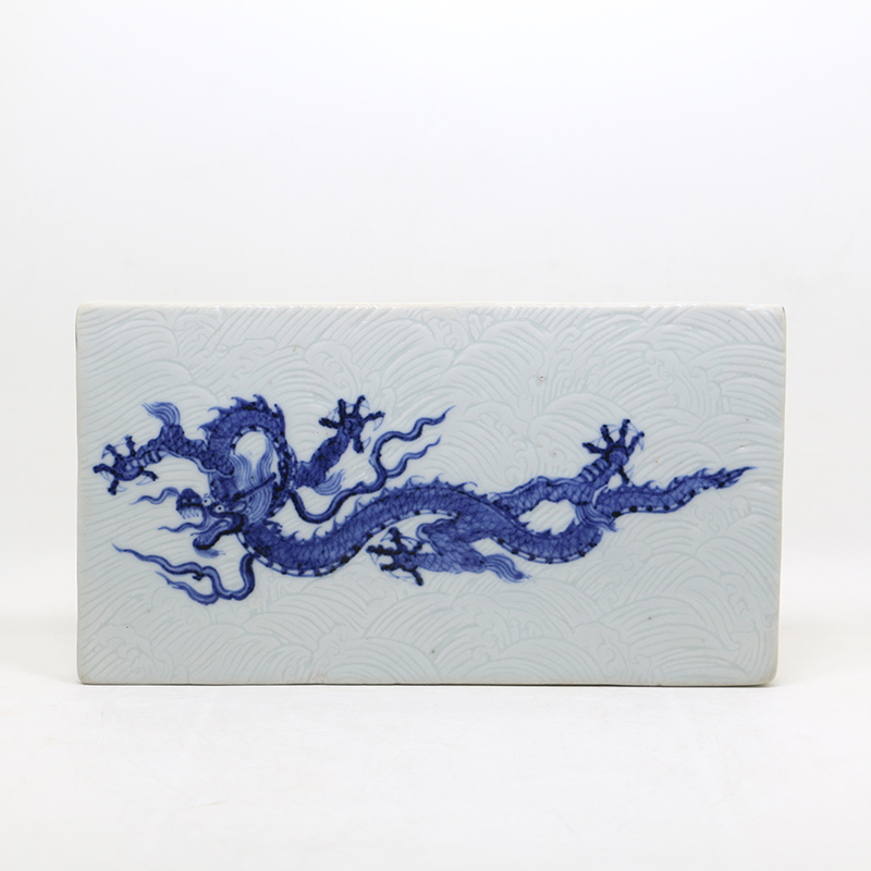 明宣德 青花暗刻海水龙纹砖