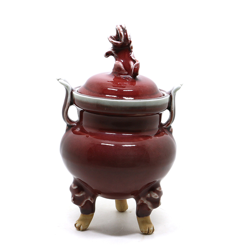 明洪武 狮纽红釉三兽足炉