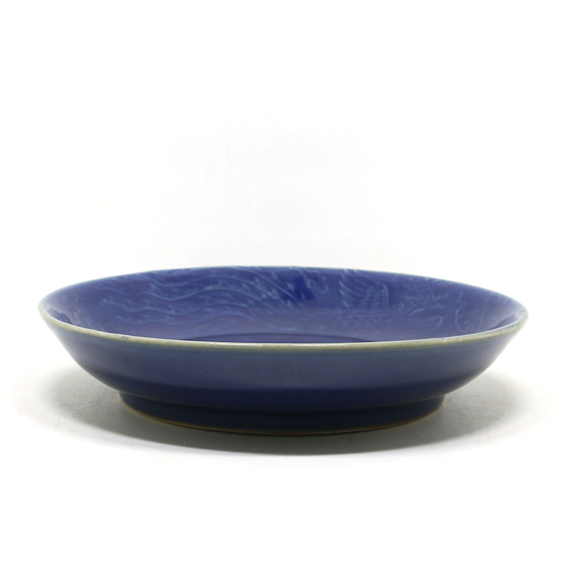 明宣德 祭蓝釉龙凤纹盘