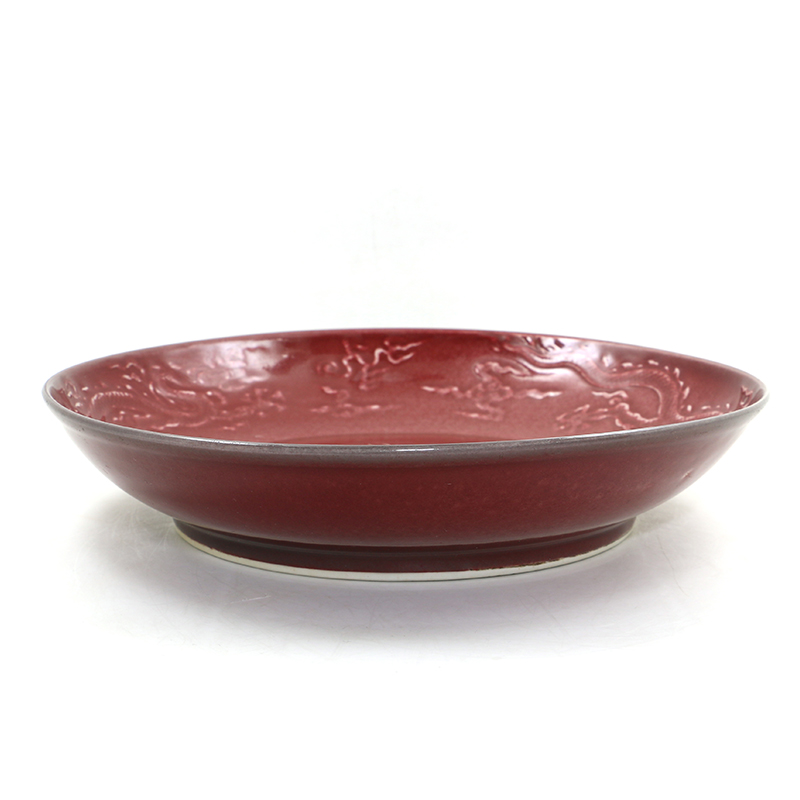 明永乐 红釉龙纹盘