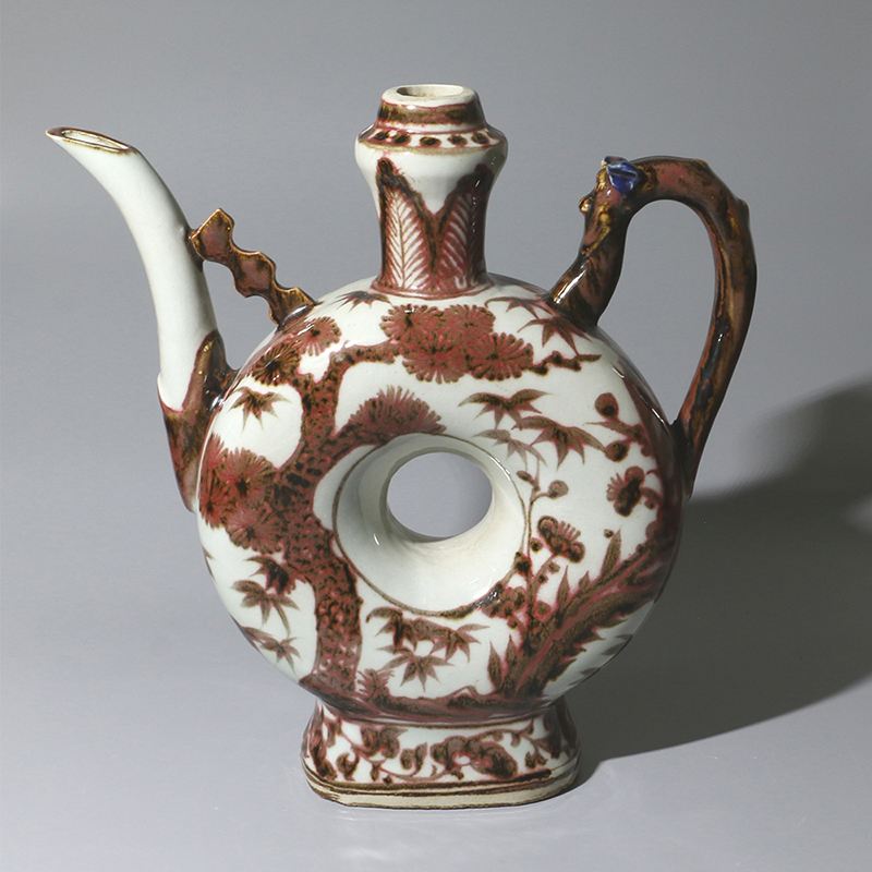 明永乐 釉里红松梅竹纹空心执壶