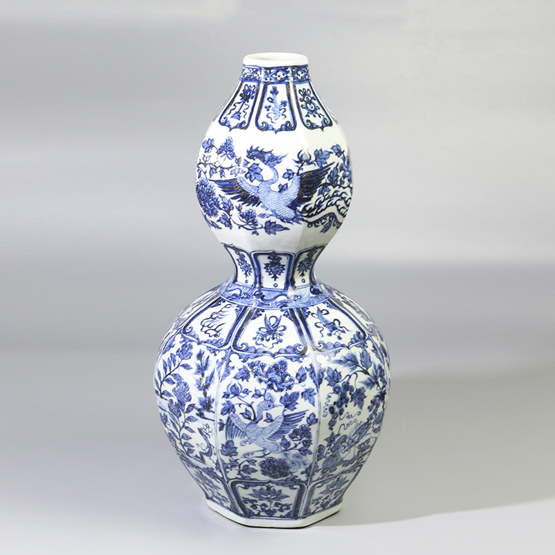 明洪武 青花凤凰花卉纹八棱葫芦瓶