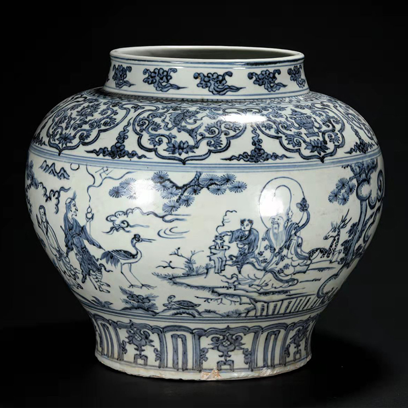 明空白期 青花人物罐